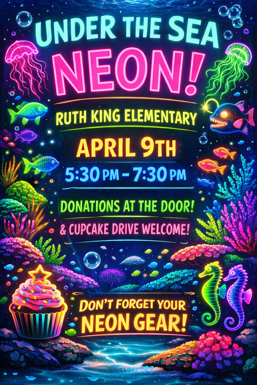 Join us on April 9th from 5:30–7:30 PM for an evening of music, dancing, and ocean-themed glow in the dark fun! Glow sticks, black lights and concessions!